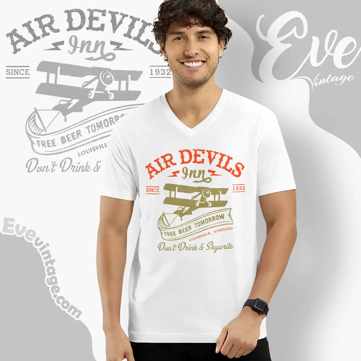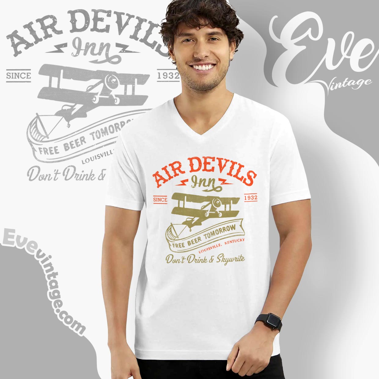 Related keywords: Air Devil’s Inn tee, Louisville dive bar shirt, aviation bar graphic tee, historic Kentucky dive bar tee