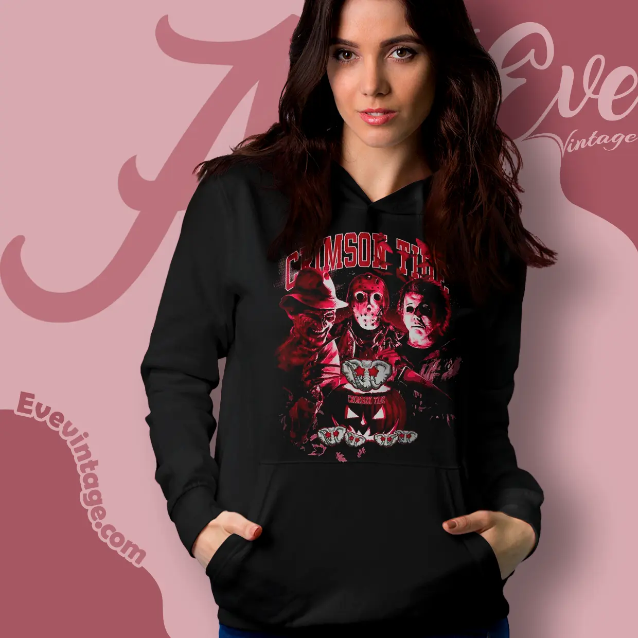 The design featured on this Alabama Crimson Tide Halloween Shirt Horror Team is available in multiple styles: Unisex T-shirt, Women T-shirt, Long Sleeve T-shirt, V-neck T-shirt, Unisex Pullover hoodie, Unisex Sweatshirt, Tank top. You can also buy them for all ages and genders, from Toddler, Kids, Youth, and Adults.
