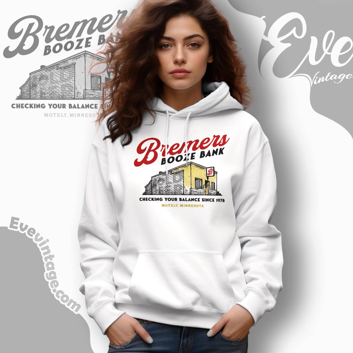 The design featured on this Bremer's Booze Bank Bar Shirt - Minnesota Dive Bar Tee is available in multiple styles: Unisex T-shirt, Women T-shirt, Long Sleeve T-shirt, V-neck T-shirt, Unisex Pullover hoodie, Unisex Sweatshirt, Tank top. You can also buy them for all ages and genders, from Toddler, Kids, Youth, and Adults.
