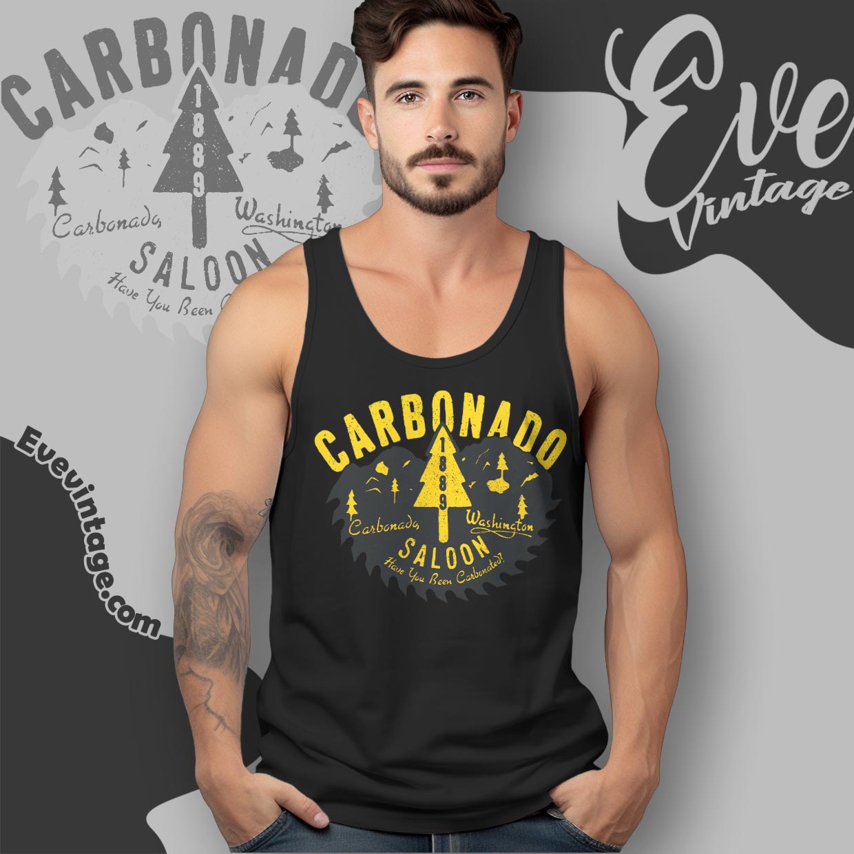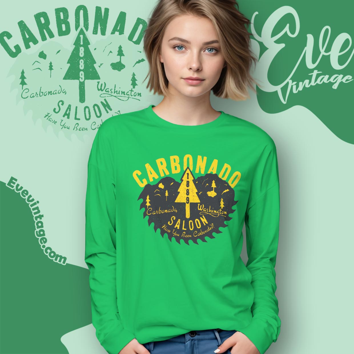 Related keywords: Carbonado Saloon tee, Washington dive bar shirt, historic mining town bar apparel, Pacific Northwest saloon graphic tee