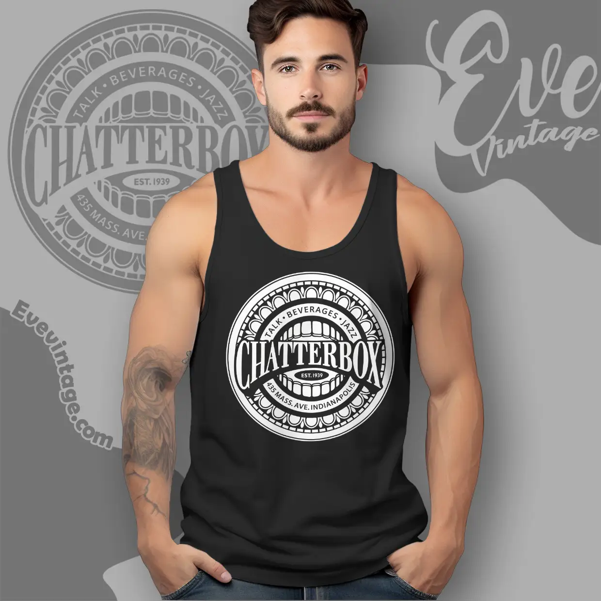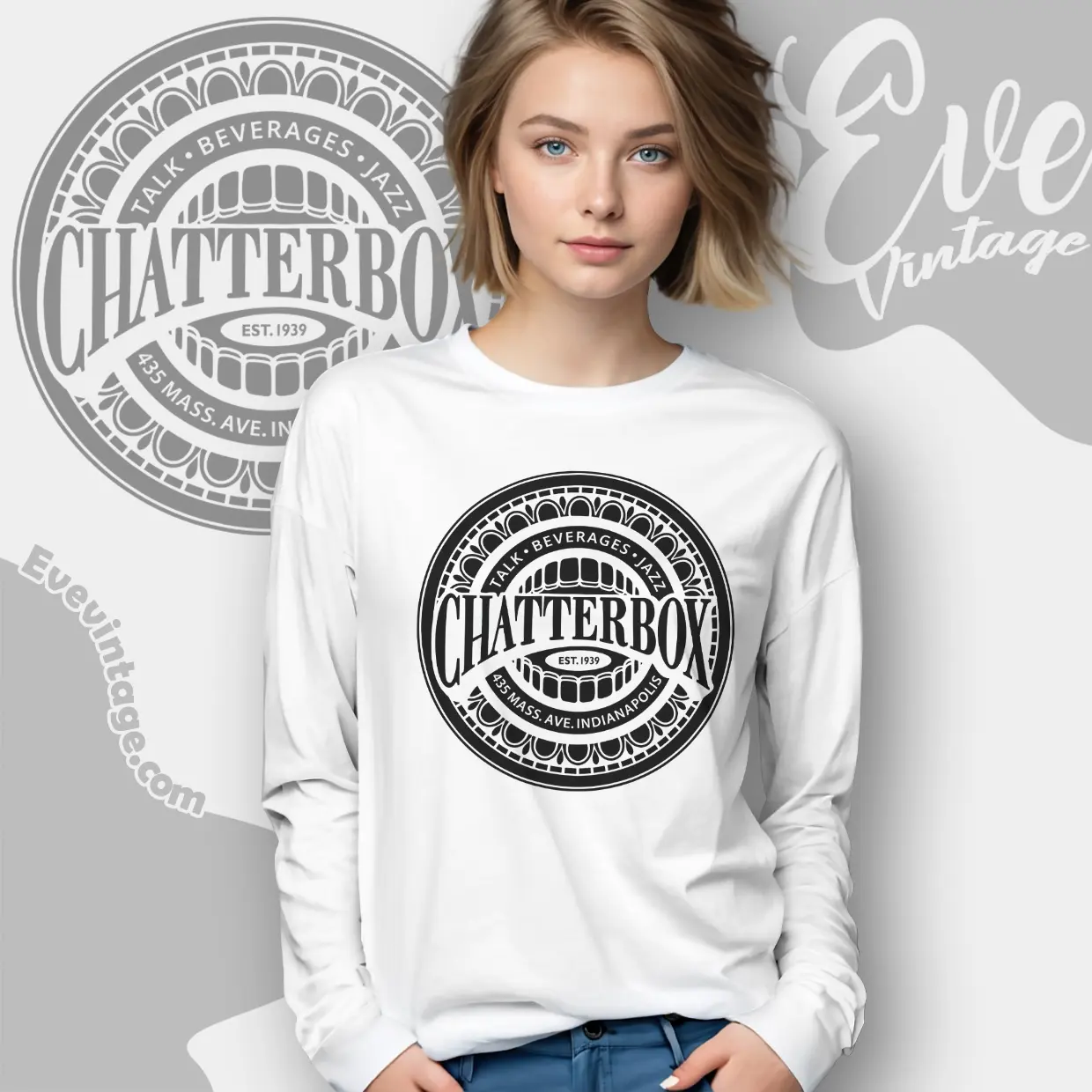 The design featured on this Chatterbox Jazz Club Shirt - Indianapolis Dive Bar Tee is available in multiple styles: Unisex T-shirt, Women T-shirt, Long Sleeve T-shirt, V-neck T-shirt, Unisex Pullover hoodie, Unisex Sweatshirt, Tank top. You can also buy them for all ages and genders, from Toddler, Kids, Youth, and Adults.
