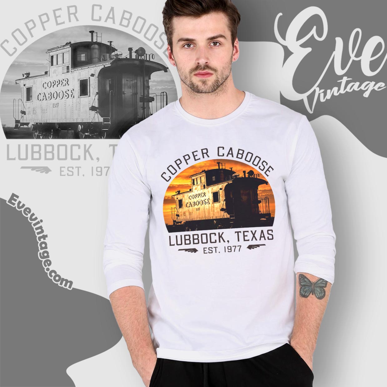 Related keywords: Copper Caboose tee, Lubbock bar grill shirt, Texas train bar graphic tee, Texas Dive Bar