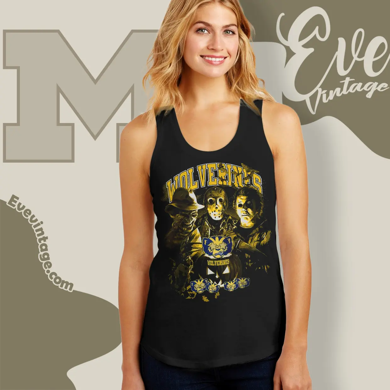 🎃 Haunting Design Featuring Iconic Horror Legends and Wolverines Pride