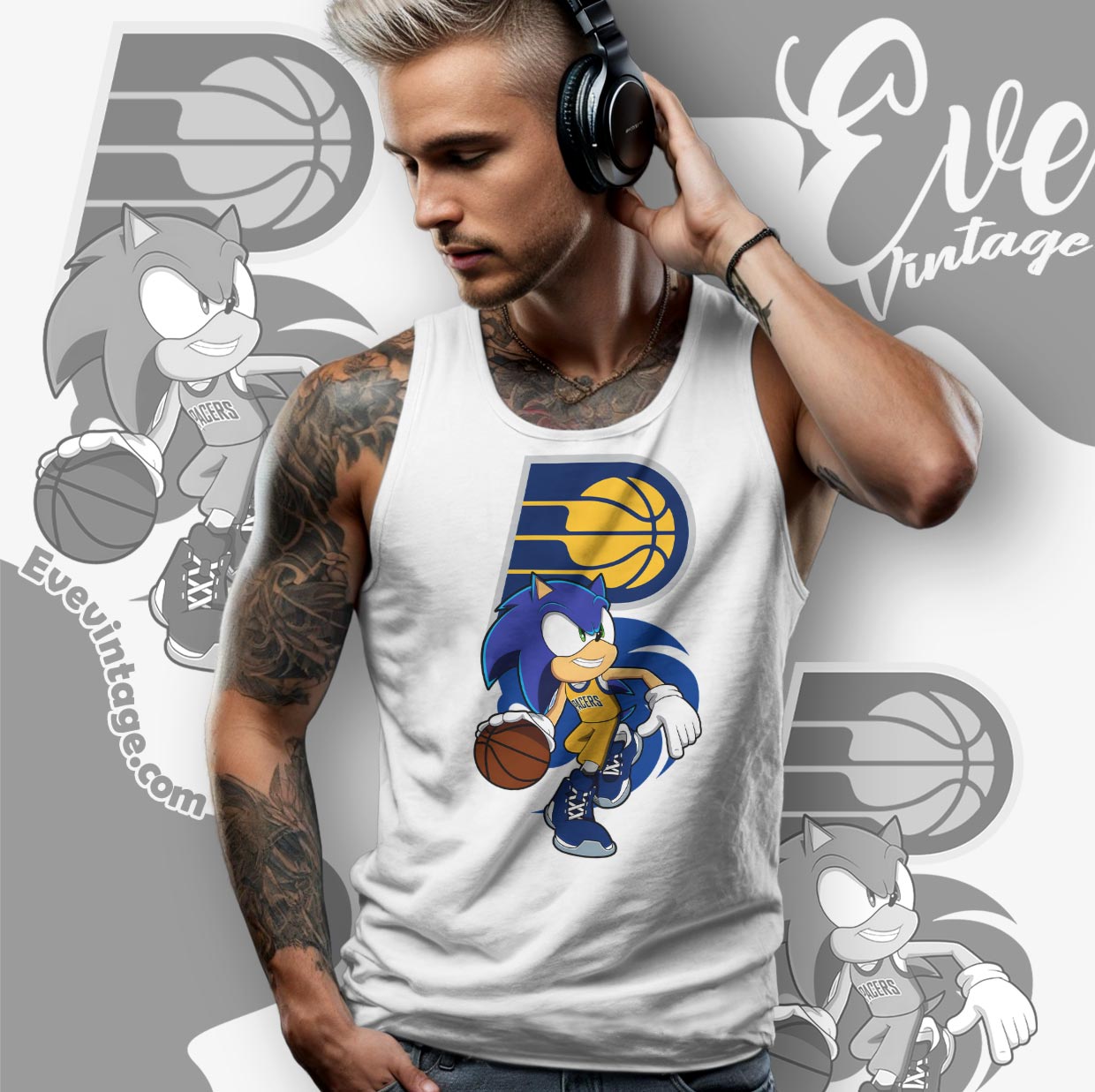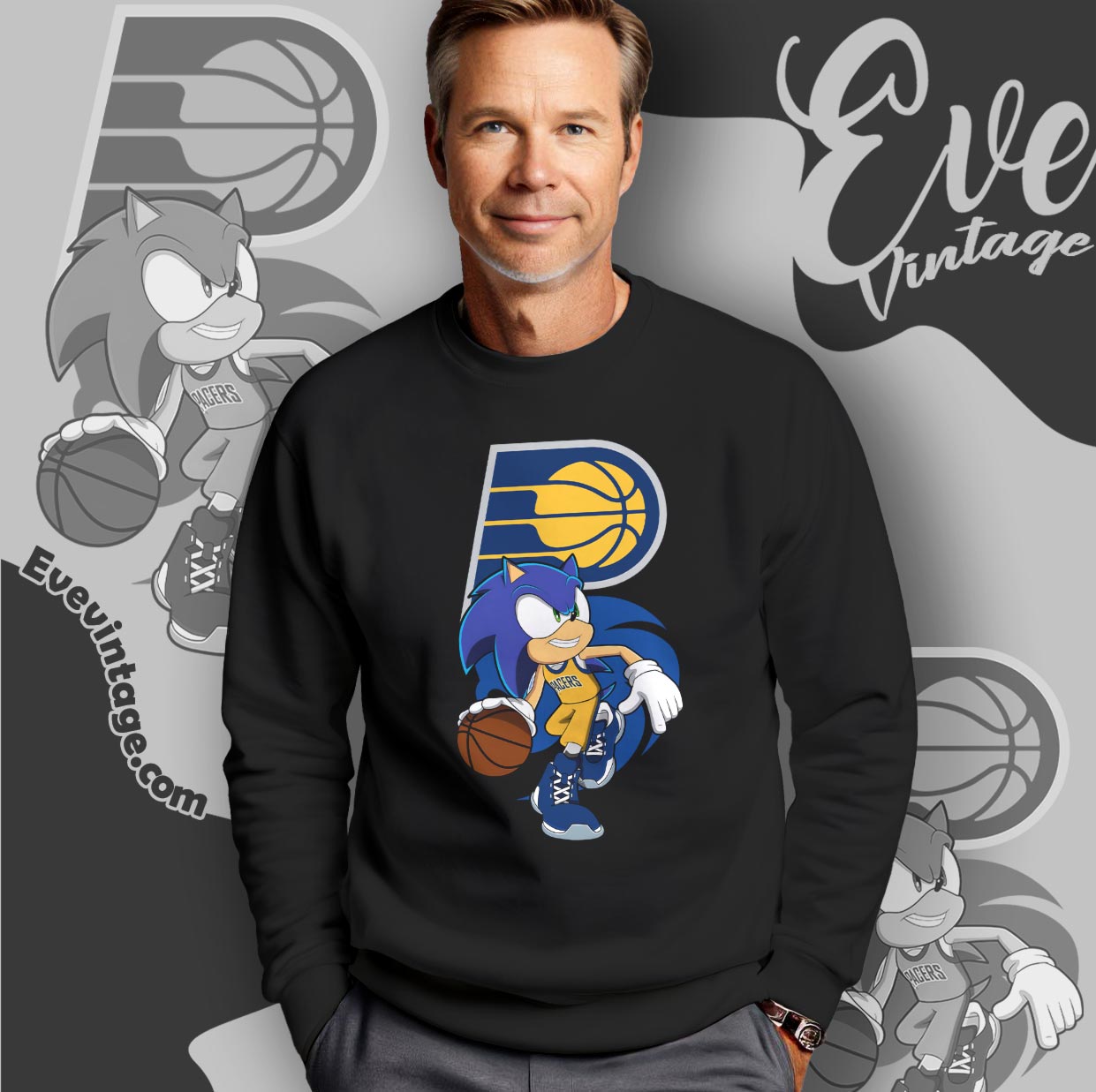 Related keywords: Indiana Pacers fan apparel; Sonic The Hedgehog basketball shirt; unique sports crossover tee; Pacers gaming fan gear