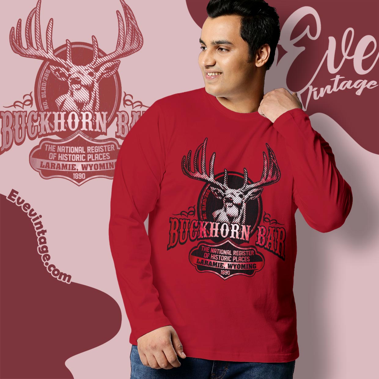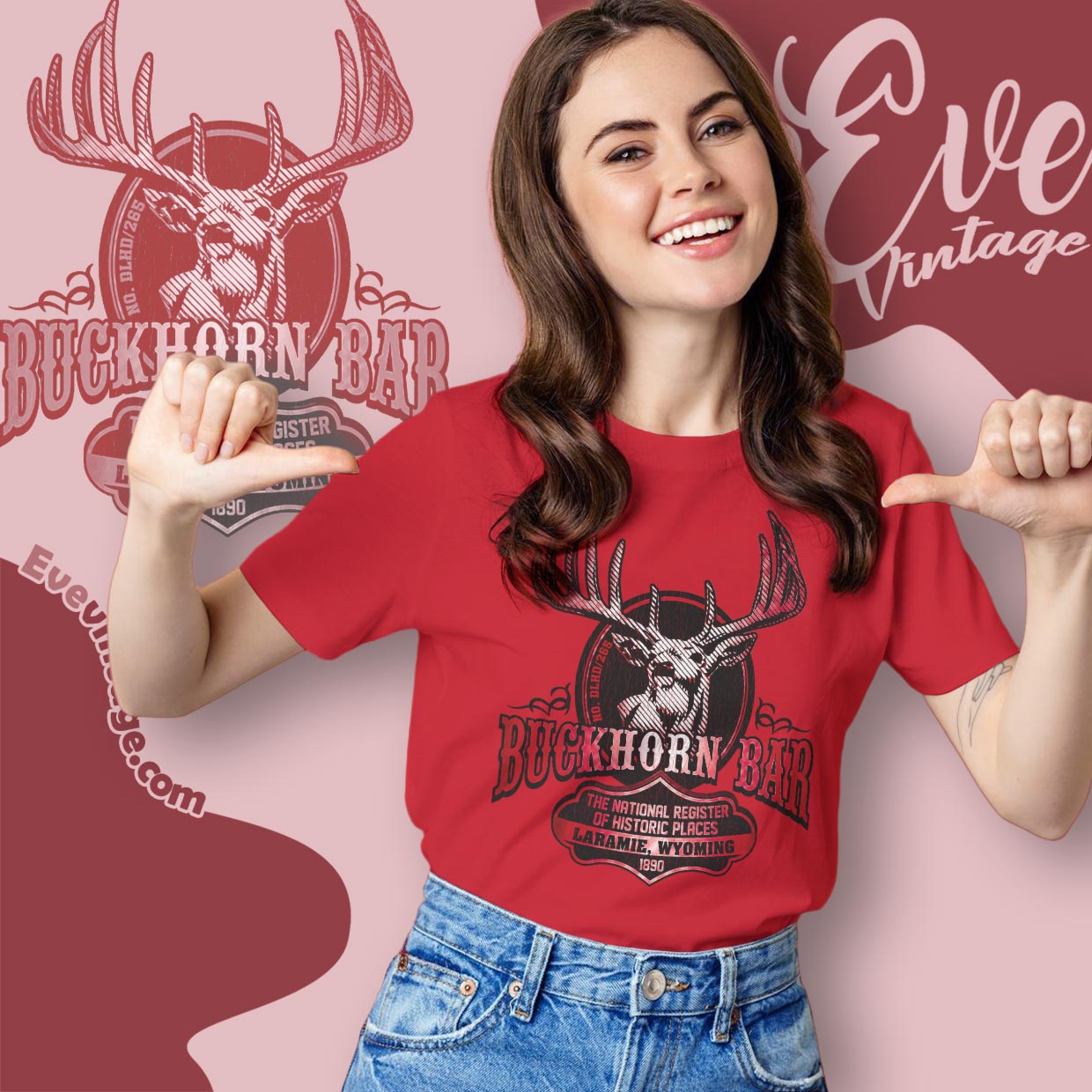 Related keywords: Buckhorn Bar tee, Laramie Wyoming dive bar shirt, historic western saloon apparel, antler bar graphic tee