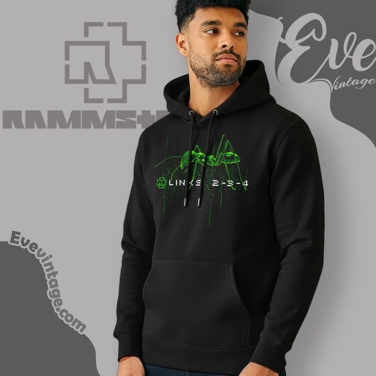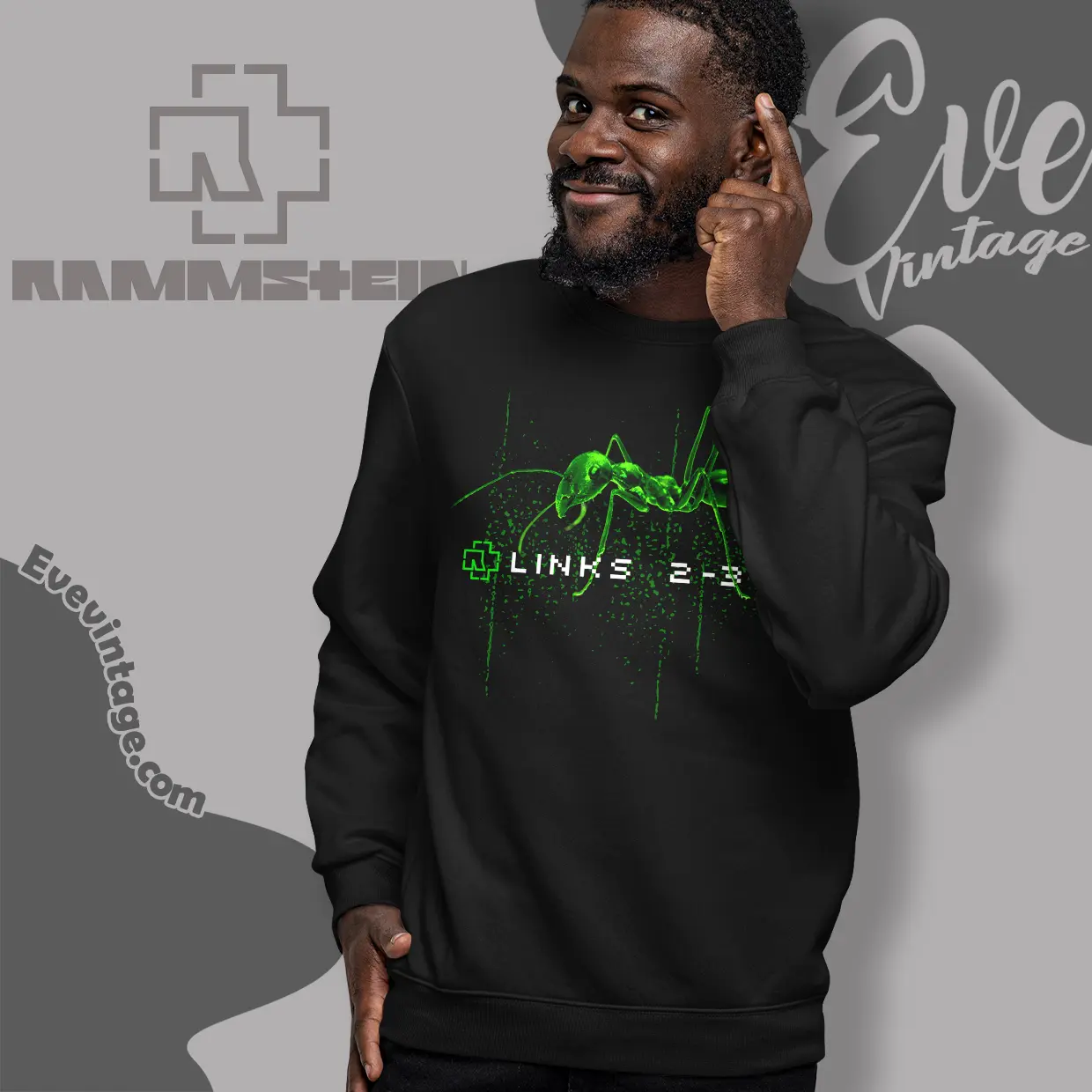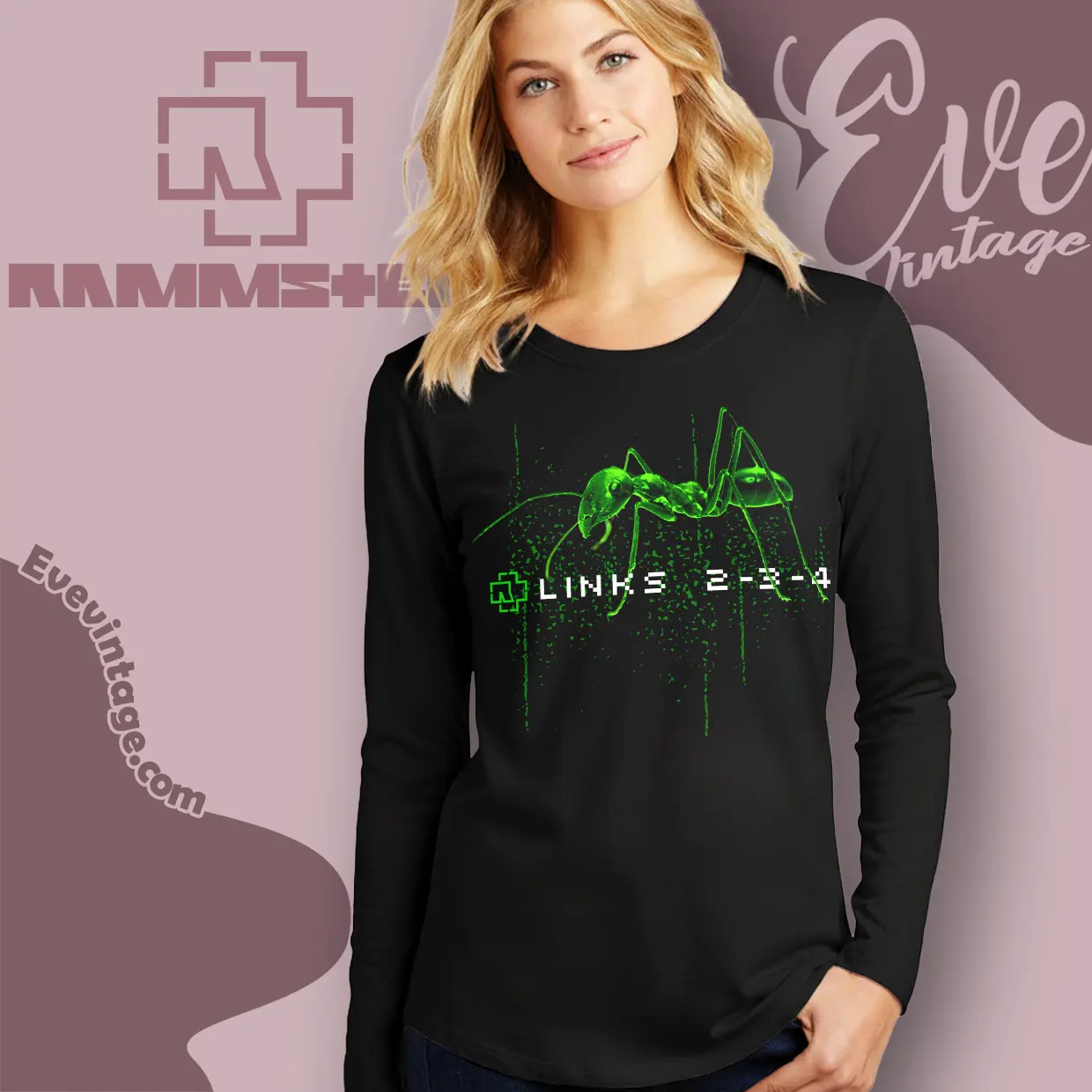 The graphic on this shirt features a captivating, glowing green ant rendered in a stark, almost digital aesthetic, marching resolutely across the fabric. Below it, the pixelated text “LINKS 2-3-4” captures the iconic marching cadence from Rammstein’s powerful song. Released on their 2001 album *Mutter*, “Links 2-3-4” was Rammstein’s direct musical response to persistent accusations of right-wing sympathies. The lyrics famously declare, “Mein Herz schlägt Links” (My heart beats left), firmly establishing the band’s political stance. The ant, a creature known for its diligent, collective, and seemingly unstoppable movement, perfectly symbolizes the song’s theme of solidarity, unified purpose, and marching forward with conviction. The vibrant green against the dark background creates a visually arresting and memorable statement piece.