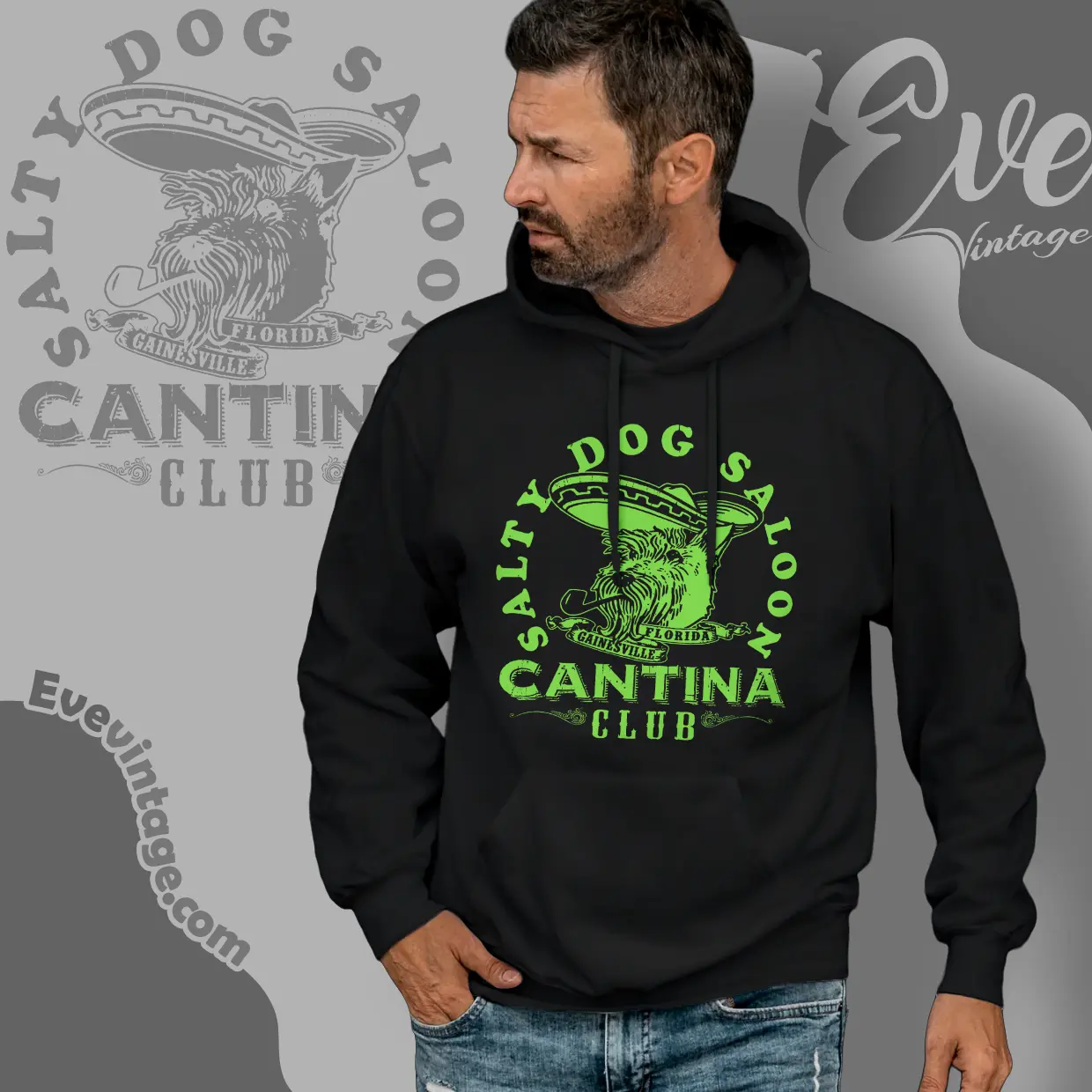 Related keywords: Salty Dog Saloon tee, Gainesville Florida dive bar shirt, cantina club graphic tee, college town bar apparel