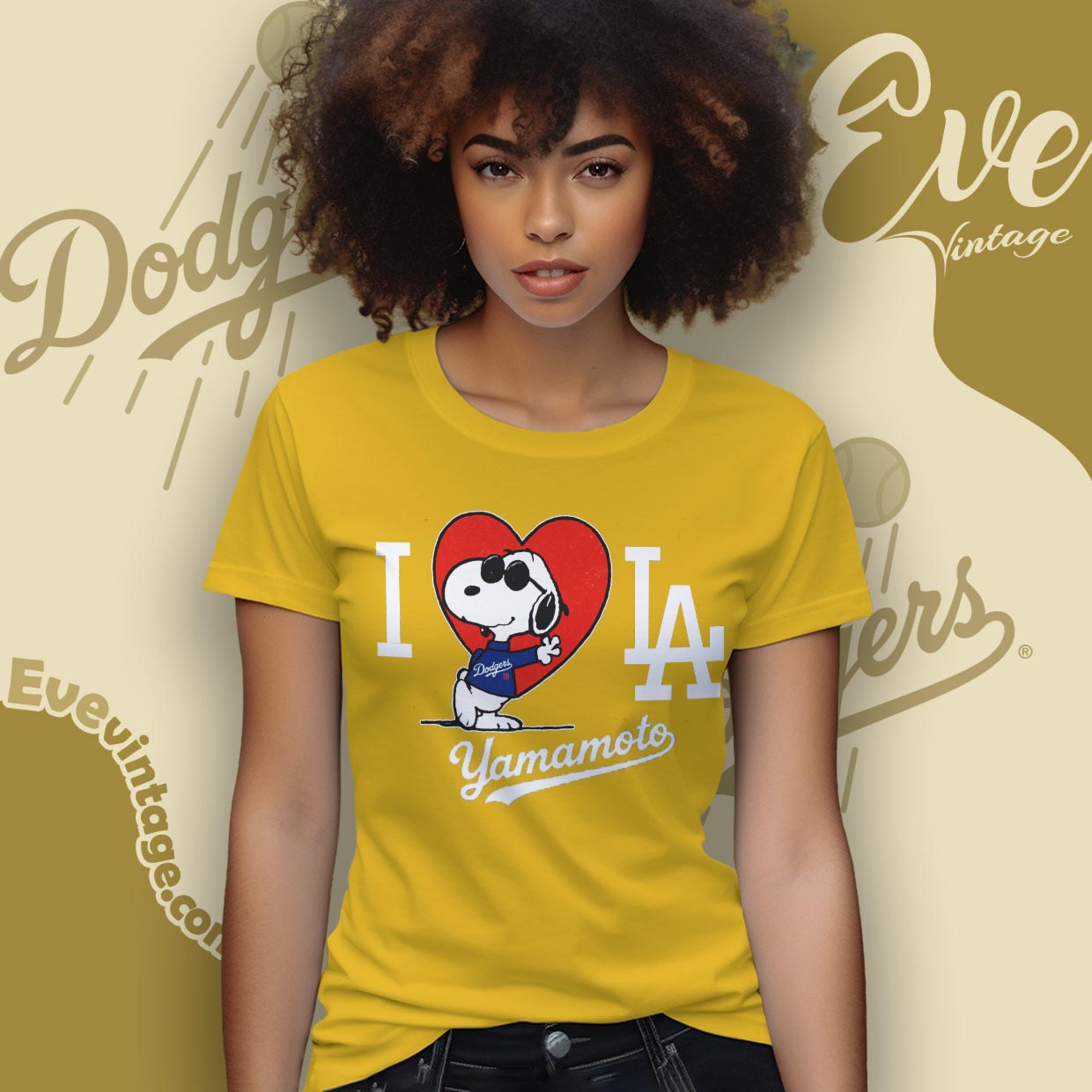 Related keywords: Snoopy Dodgers Yamamoto shirt, I Love LA Yamamoto tee, Los Angeles Dodgers Snoopy shirt, Dodgers baseball fan shirt, Yamamoto Dodgers shirt, LA Dodgers cartoon tee, Dodgers Snoopy fan apparel