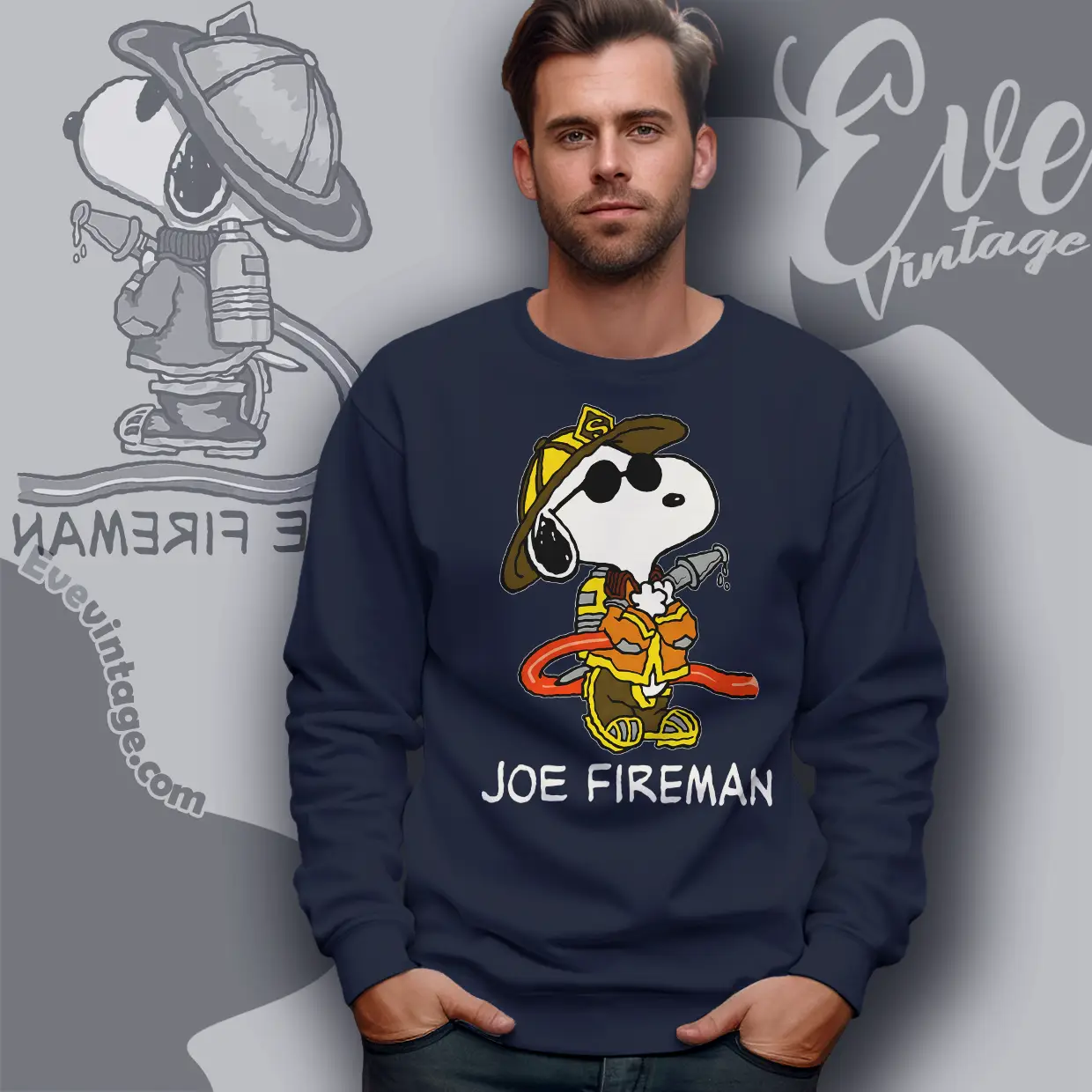 The design featured on this Snoopy Joe Fireman Shirt is available in multiple styles: Unisex T-shirt, Women T-shirt, Long Sleeve T-shirt, V-neck T-shirt, Unisex Pullover hoodie, Unisex Sweatshirt, Tank top. You can also buy them for all ages and genders, from Toddler, Kids, Youth, and Adults.