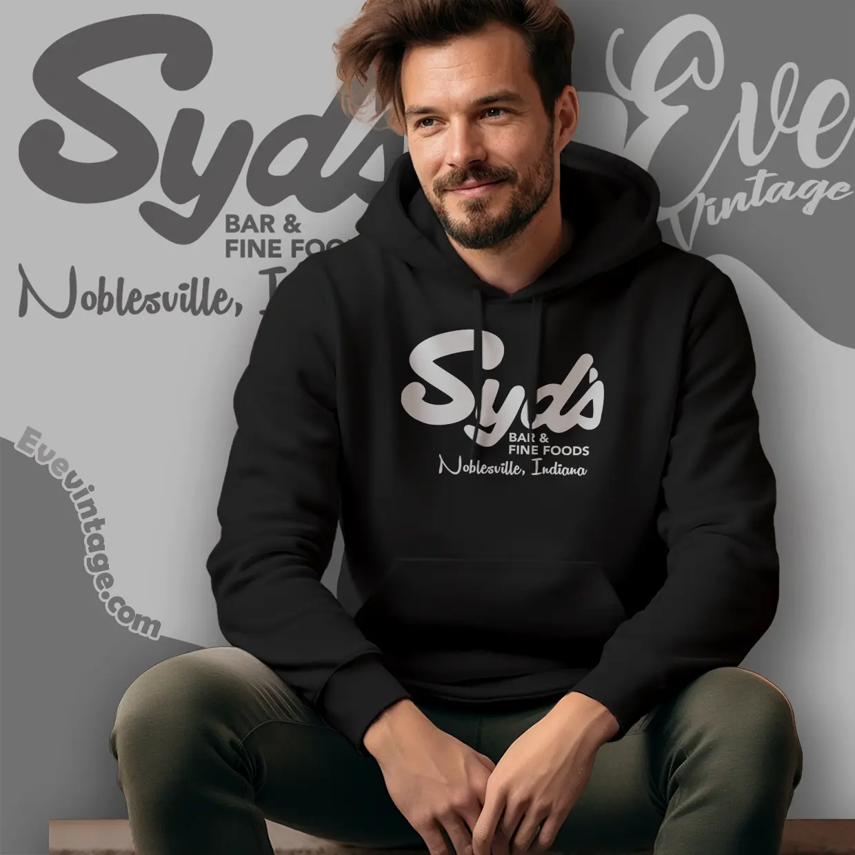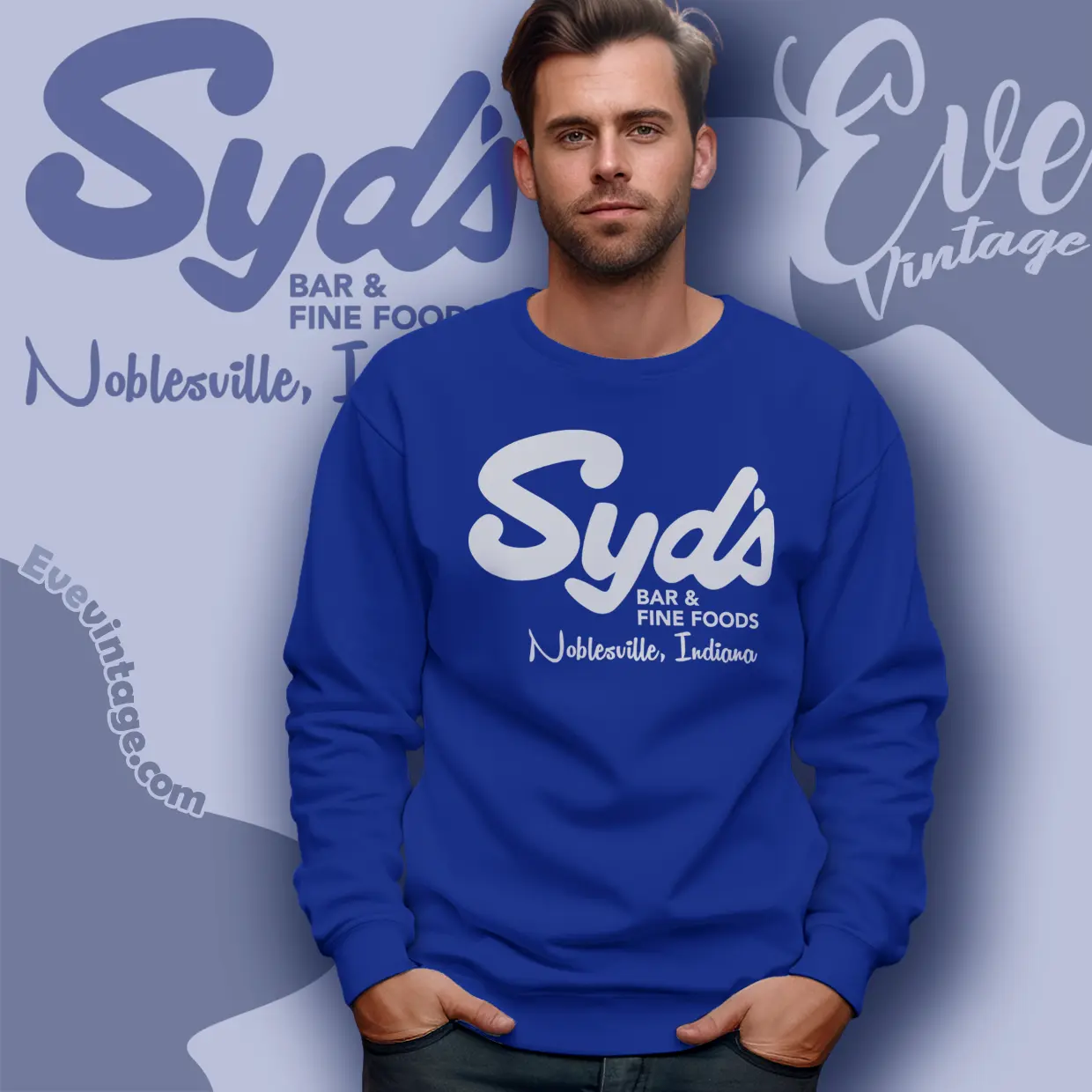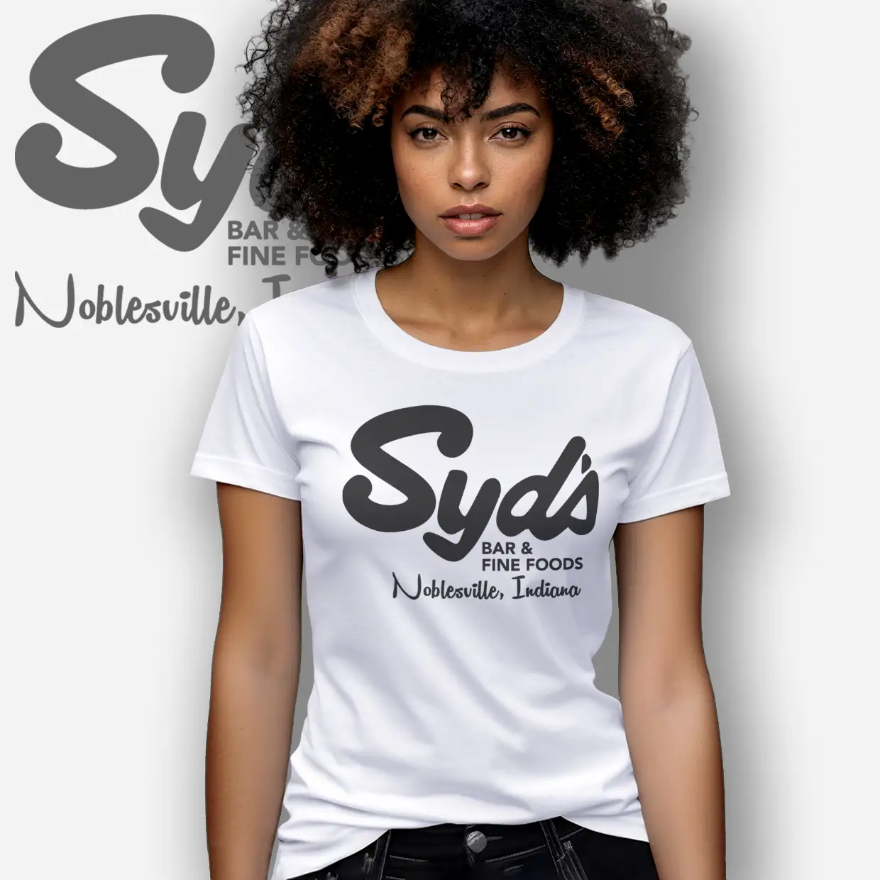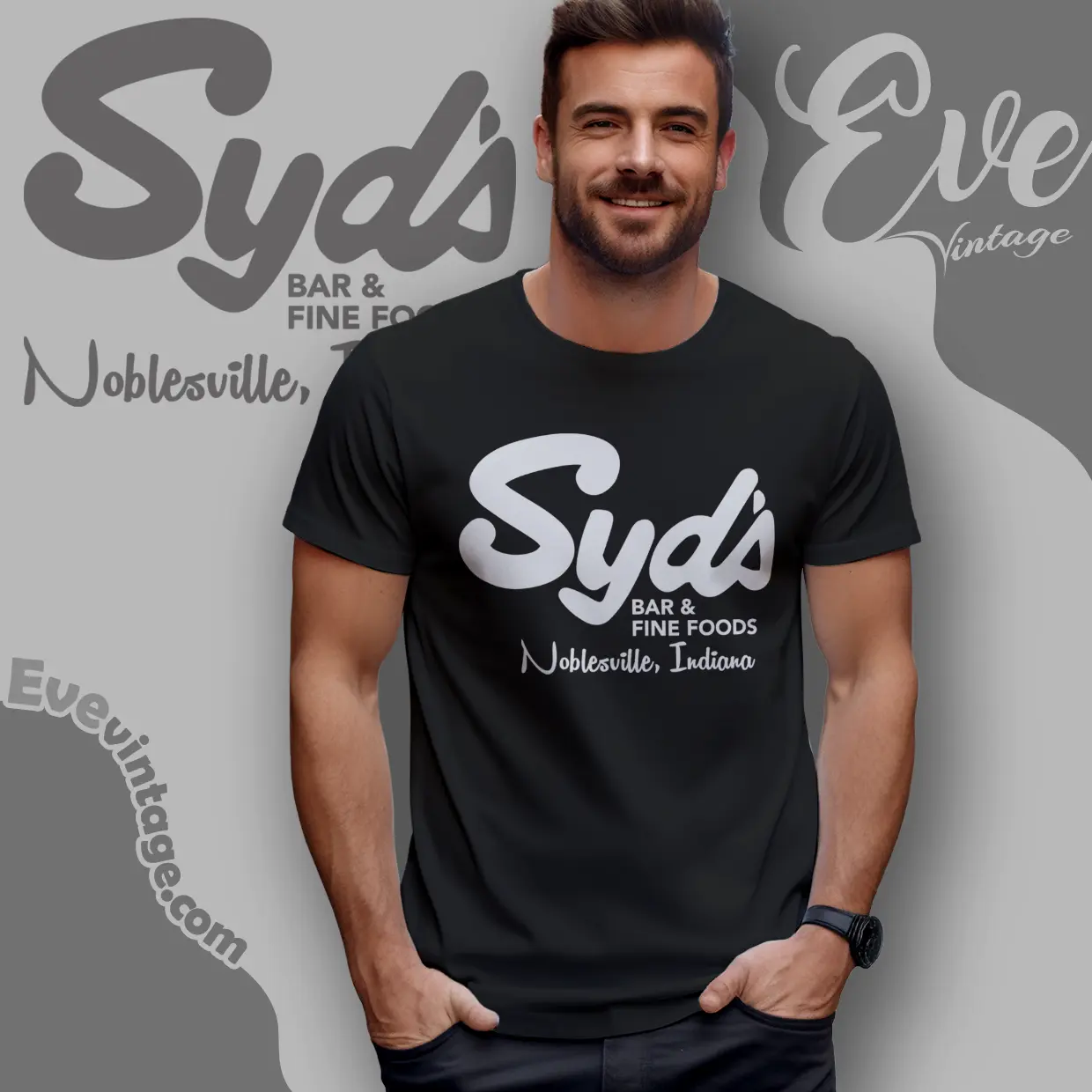 Related keywords: Syd’s Bar tee, Noblesville Indiana dive bar shirt, Indiana bar logo t-shirt, small town dive bar apparel