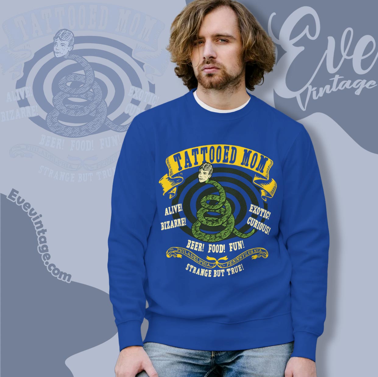 The design featured on this Tattooed Mom Bar Shirt - Philadelphia Dive Bar Tee is available in multiple styles: Unisex T-shirt, Women T-shirt, Long Sleeve T-shirt, V-neck T-shirt, Unisex Pullover hoodie, Unisex Sweatshirt, Tank top. You can also buy them for all ages and genders, from Toddler, Kids, Youth, and Adults.